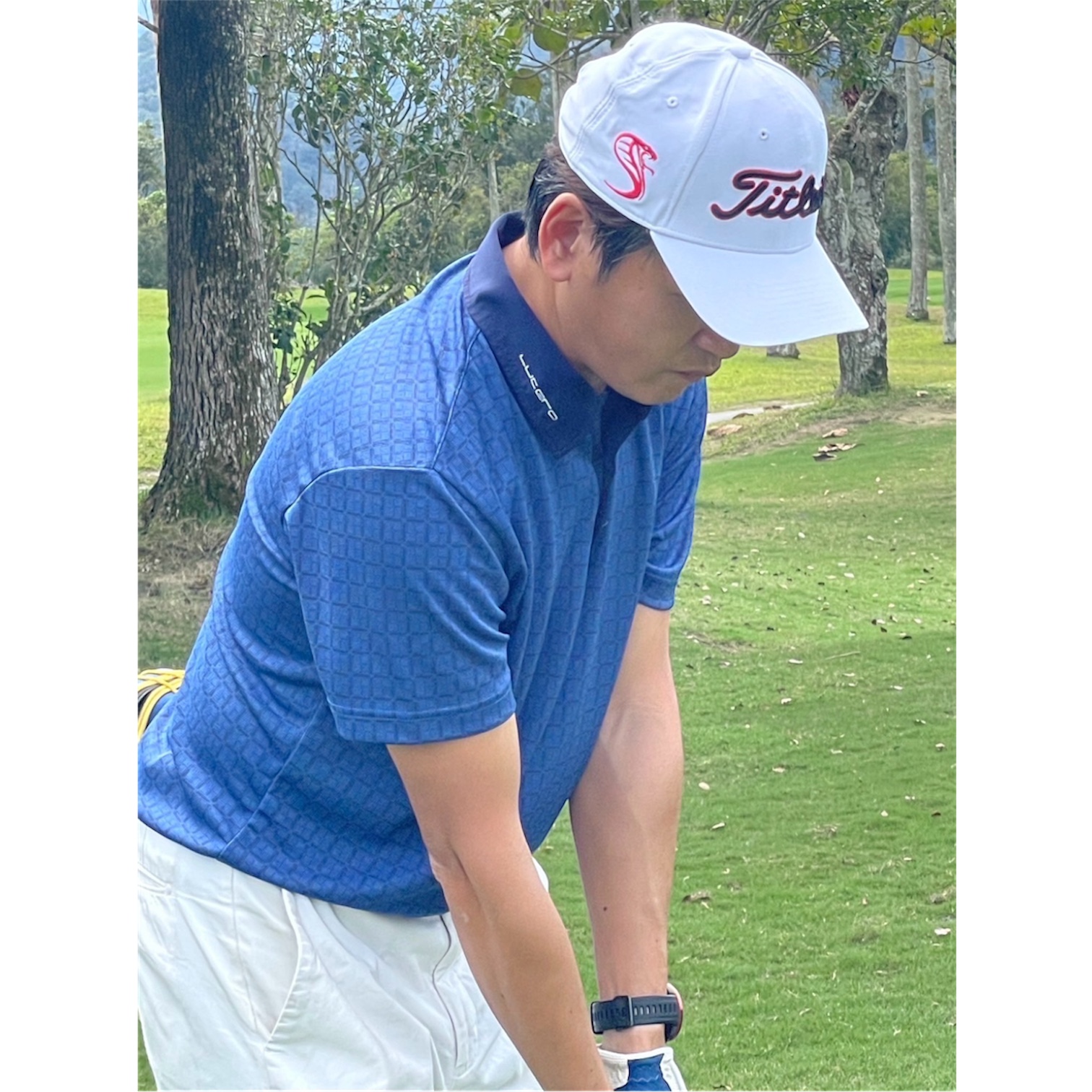 方格紋圖案印花-POLO衫短袖上衣-深藍(男)