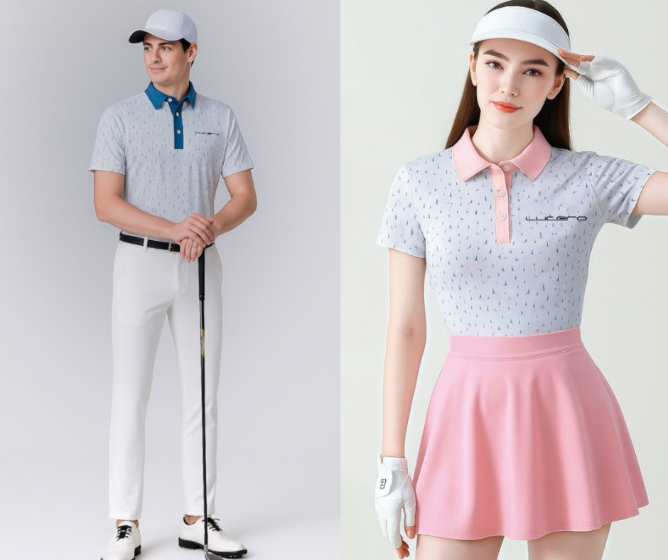 情侶款|小十字深淺藍印花 短袖POLO衫-女