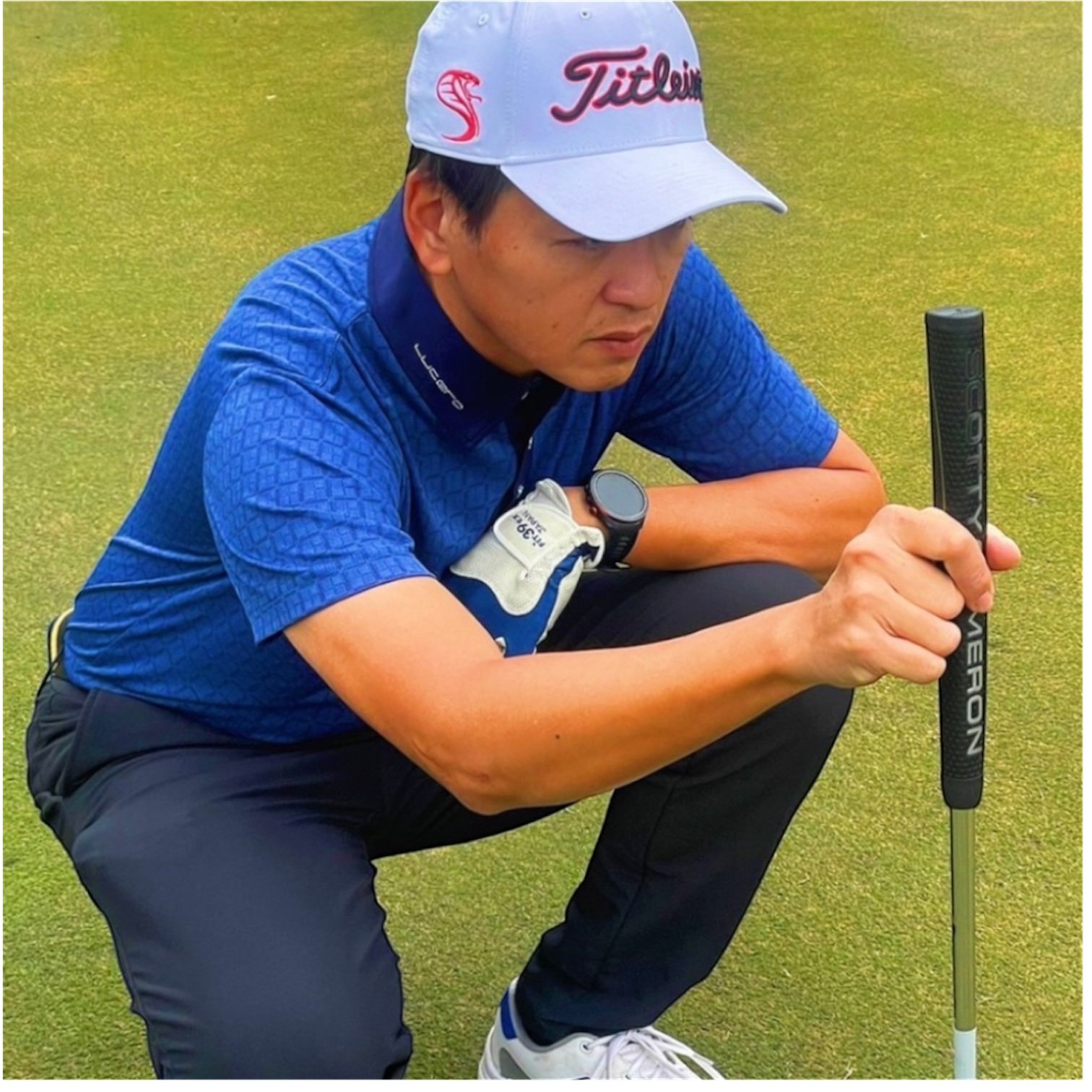 情侶款|素面蜂巢紋 蒂芬妮綠 繡花短袖POLO-男