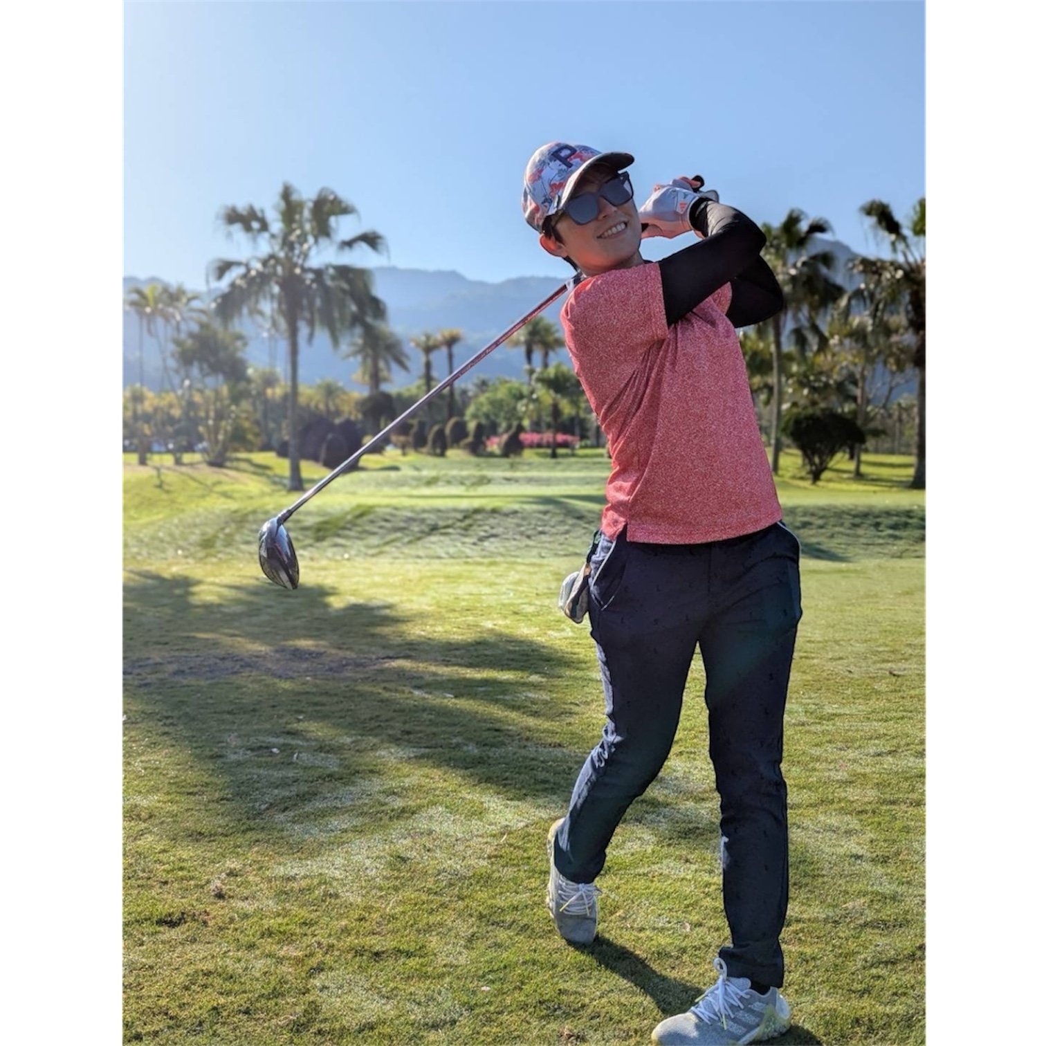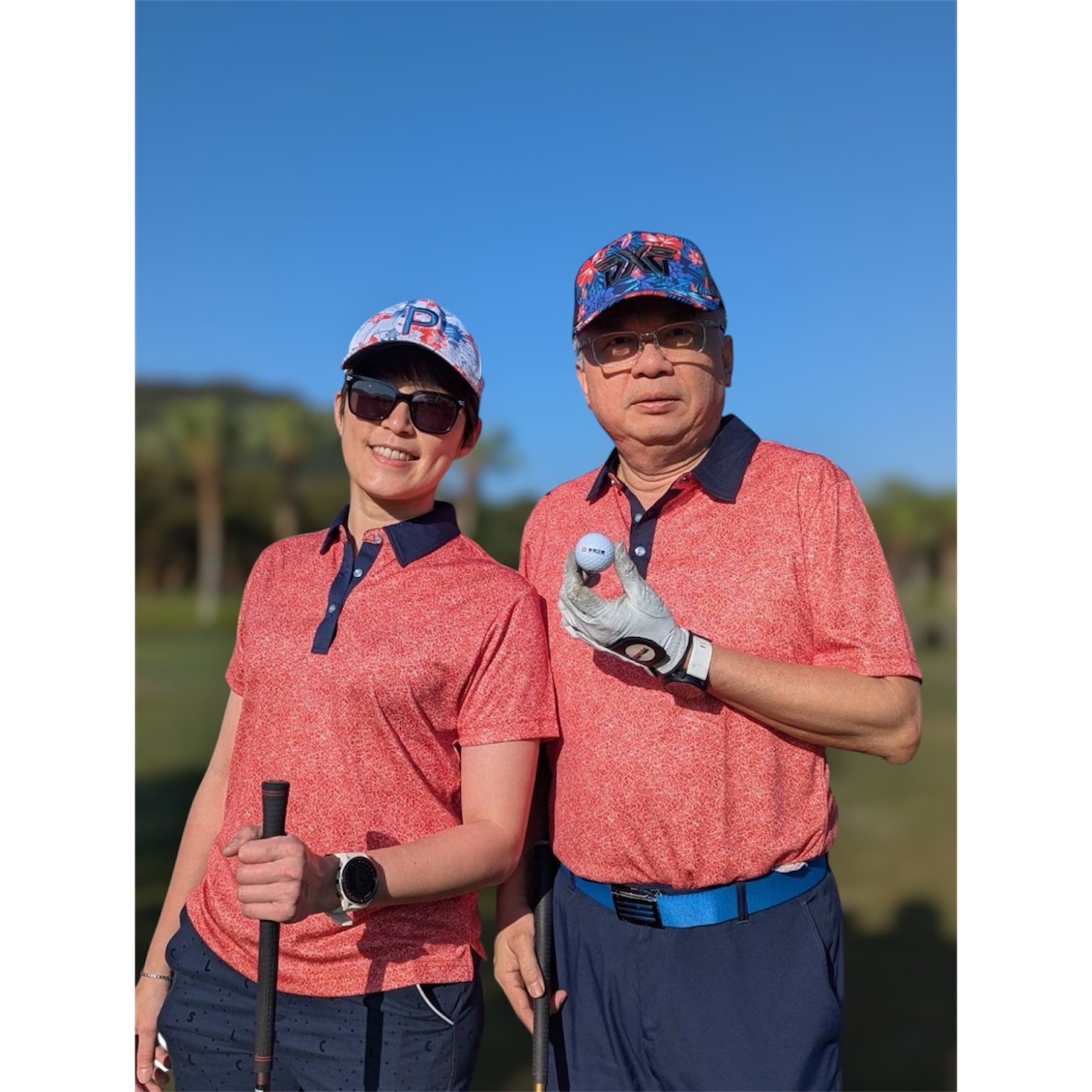 情侶款 | 棕梠樹圖案印花-POLO衫長袖上衣-深藍(男)