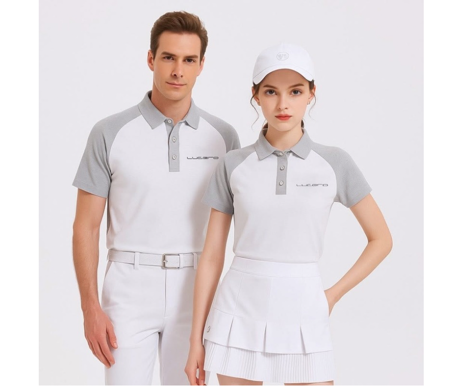 情侶款 | 灰袖拼接白色-POLO衫短袖上衣-灰袖(男)