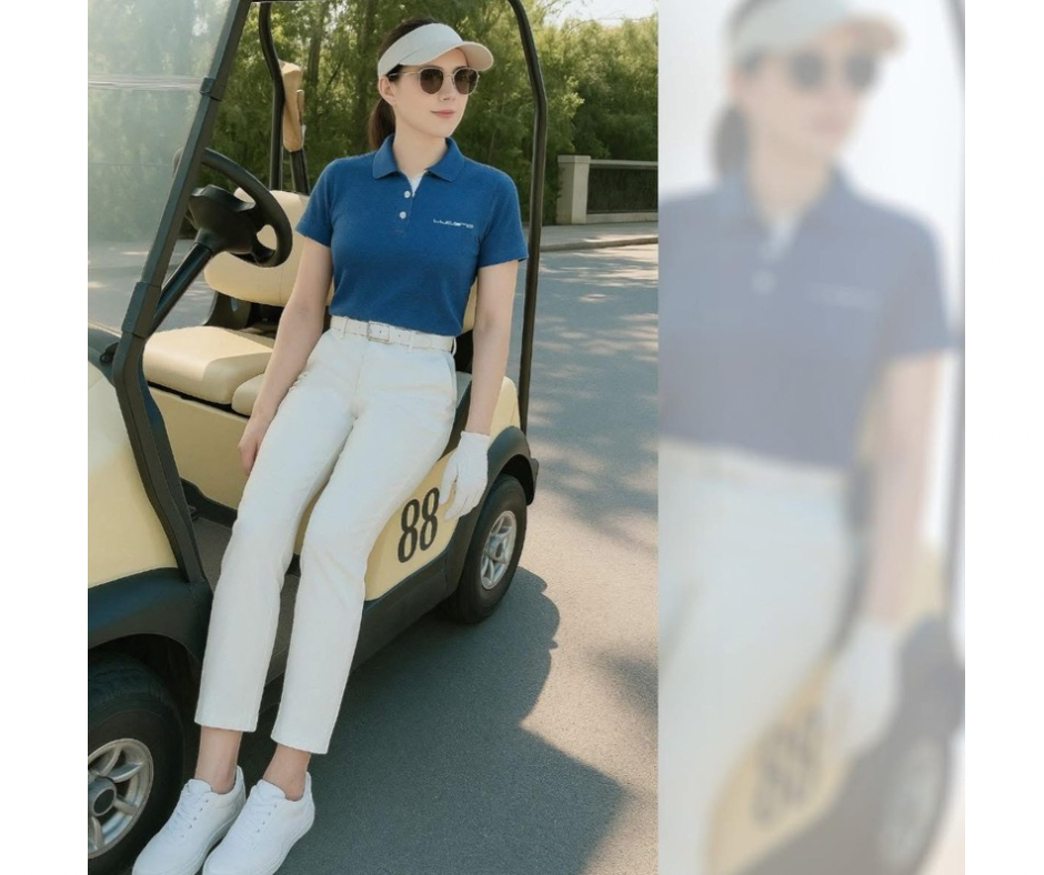 情侶款|素面蜂巢紋 蒂芬妮綠 繡花短袖POLO-女