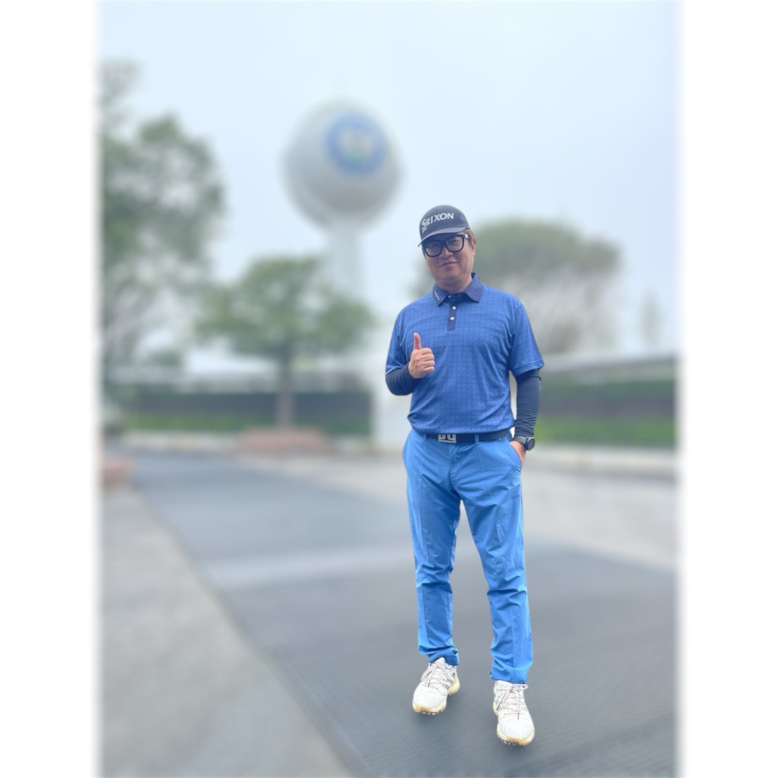 男款|螢火蟲系列 天空藍雪花斜紋印花 短袖POLO衫-男